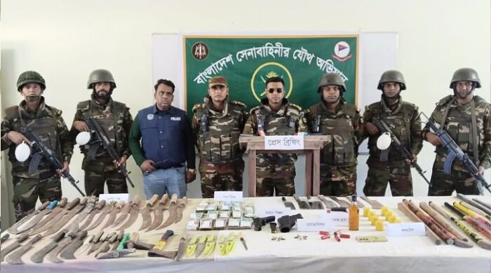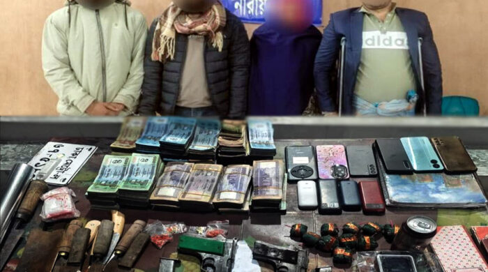 না’গঞ্জে যৌথ বাহিনীর অভিযানে দেশি-বিদেশি অস্ত্র, মাদক ও ষোল লক্ষ টাকাসহ গ্রেপ্তার ৪