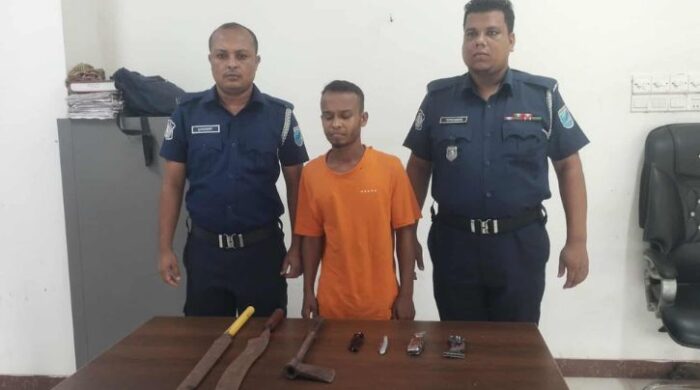 নারায়ণগঞ্জের বন্দরে দেশীয় ধারালো অস্ত্রসহ সিফাত (২৮) নামে এক চিহ্নিত মাদক কারবারিকে গ্রেপ্তার করেছে পুলিশ। এসময় তার বসতঘর তল্লাশি চালিয়ে ৩টি সুইচ গিয়ার, ১টি ক্ষুর, ১টি দেশীয় তৈরি চাইনিজ কুড়াল