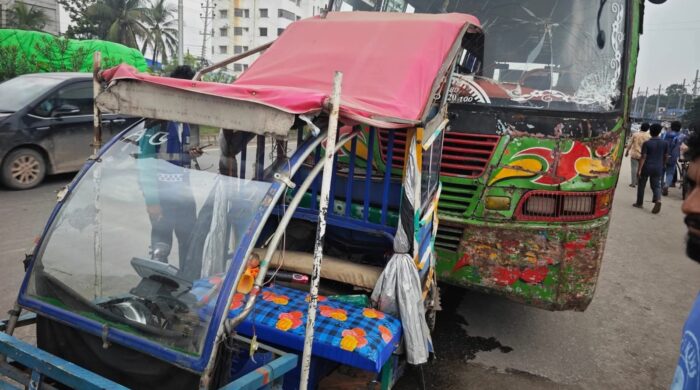 ঢাকা-নারায়ণগঞ্জ সংযোগ সড়কে মৌমিতা ট্রান্সপোর্ট লিমিটেডের একটি বাসের ধাক্কায় চার আসনের ব্যাটারিচালিত রিকশার (ইজিবাইক) একজন যাত্রী মারা গেছেন। আহত হয়েছেন আরও দুইজন। এদিকে, ঘটনার পর স্থানীয় লোকজন ও ইজিবাইক চালকরা
