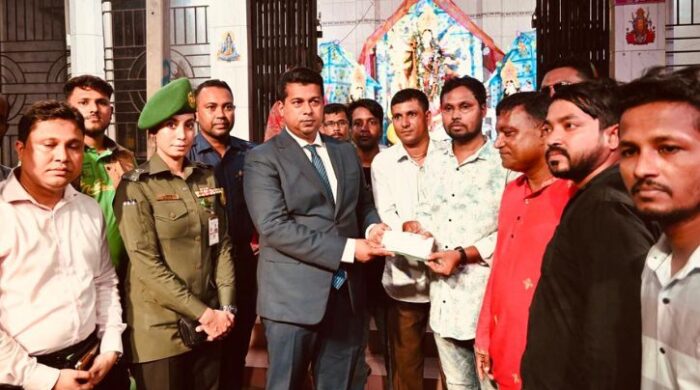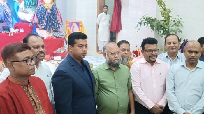 নারায়ণগঞ্জে মহাসপ্তমীতে রূপগঞ্জের পর বন্দর উপজেলায় শারদীয় দুর্গাপূজা নির্বিঘ্নে ও শান্তিপূর্ণভাবে উদযাপনের লক্ষ্যে মণ্ডপ পরিদর্শন করেছেন জেলা প্রশাসক মোহাম্মদ জাহিদুল ইসলাম মিঞা। সোমবার (২৯ সেপ্টেম্বর) বিকালে তিনি বন্দর উপজেলার শ্রী শ্রী