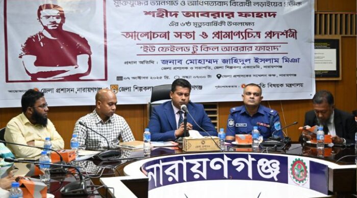 বাংলাদেশ প্রকৌশল বিশ্ববিদ্যালয়ের (বুয়েট) শিক্ষার্থী আবরার ফাহাদের ষষ্ঠ মৃত্যুবার্ষিকী উপলক্ষে আলোচনা সভা ও দোয়া অনুষ্ঠিত হয়েছে। মঙ্গলবার (৭ অক্টোবর) সন্ধ্যা ৭টায় জেলা প্রশাসকের সম্মেলন কক্ষে এ সভা ও প্রামাণ্যচিত্র প্রদর্শন