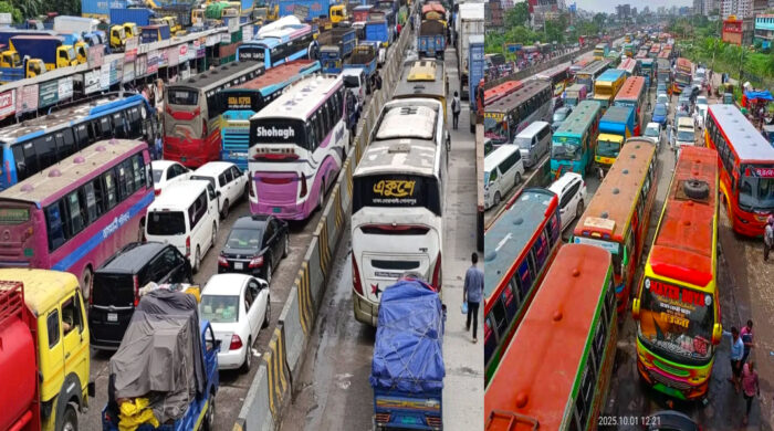 র্দুগাপূজার ছুটকিে কন্দ্রে করে ঢাকা-চট্টগ্রাম মহাসড়করে নারায়ণগঞ্জরে সাইনর্বোড থকেে মঘেনা টোলপ্লাজা র্পযন্ত প্রায় ১৯ কলিোমটিার র্দীঘ যানজটরে সৃষ্টি হয়ছে।ে ছুটতিে ঘরমুখো ও পূজামুখী মানুষরে যাতায়াতে রাজধানীসহ আশপোশরে গ্রামরে পথে মানুষরে